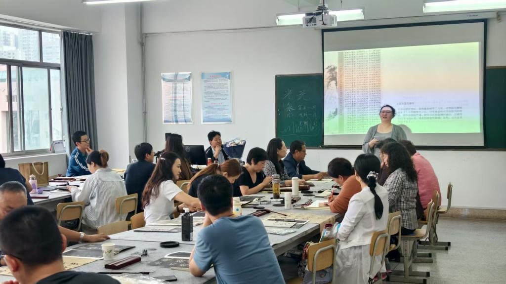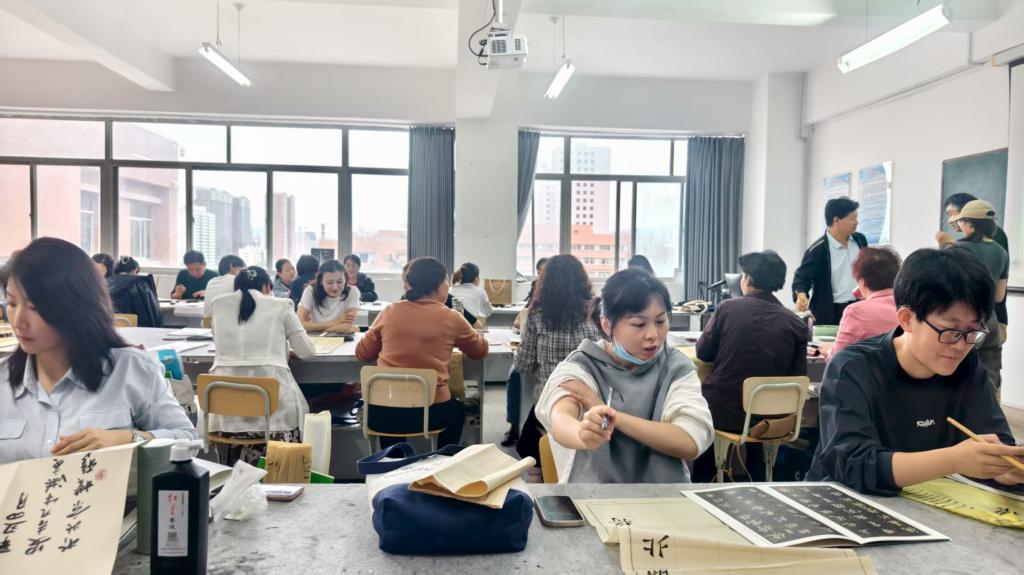 本期书法班面向全校在职教职工,将于每周四下午和晚上在四号实验楼505书法教室开展培训。王永斌老师凭借丰富的教学经验、严谨的教风、高超的艺术素养和无私奉献的人格魅力,已培养出一批热爱书法的教职工学员,显著提升了学员的书法技艺与艺术鉴赏能力。书法班注重书法基础能力培养,以楷书临摹与创作为主线,涵盖学书准备、基本笔画、间架结构、偏旁规律以及从临摹到创作的全过程训练。课程采取现场讲解示范、课后作业练习和交流点评互动相结合的方式,全面提升学员的临帖与创作能力。